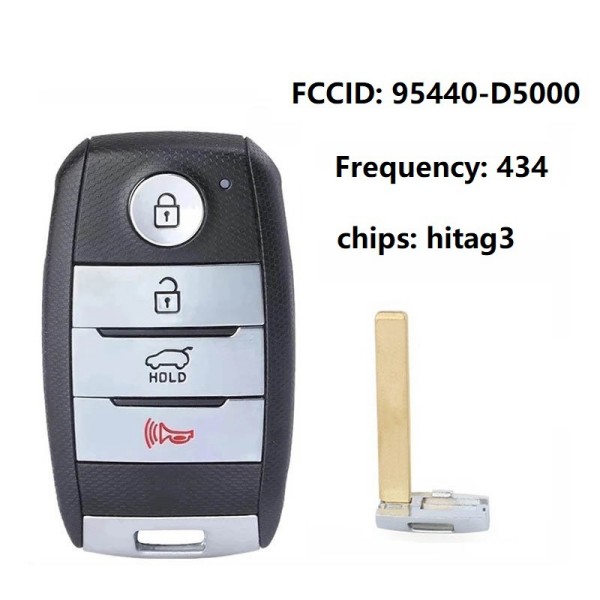 Suitable for 2016 Kia Optima remote control smart key 3 buttons 95440-D4000/D5000 434mhz Hitag3 chip