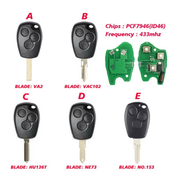 For Renault 3 button remote key with 7946 chip and 433mhz