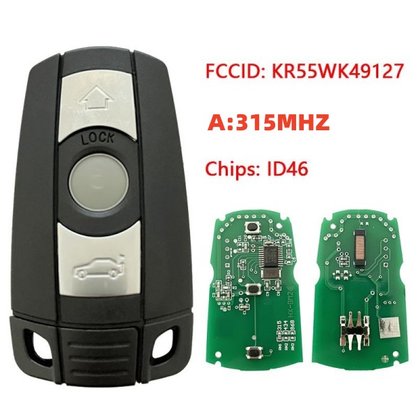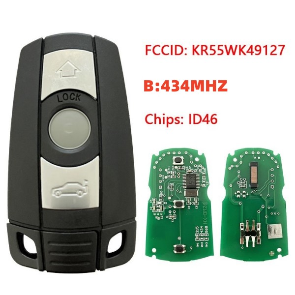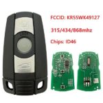 For BMW CAS3 3 button semi-keyless remote key with 315mhz/433.9mhz/868mhz ID46 Chip FCCID: KR55WK49127