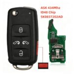For VW 4+1 button remote control car key ASK 434Mhz ID48 5K0837202AD