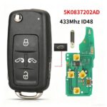 For VW 5-button remote car key ID48 chip 433mhz 5K0837202AD